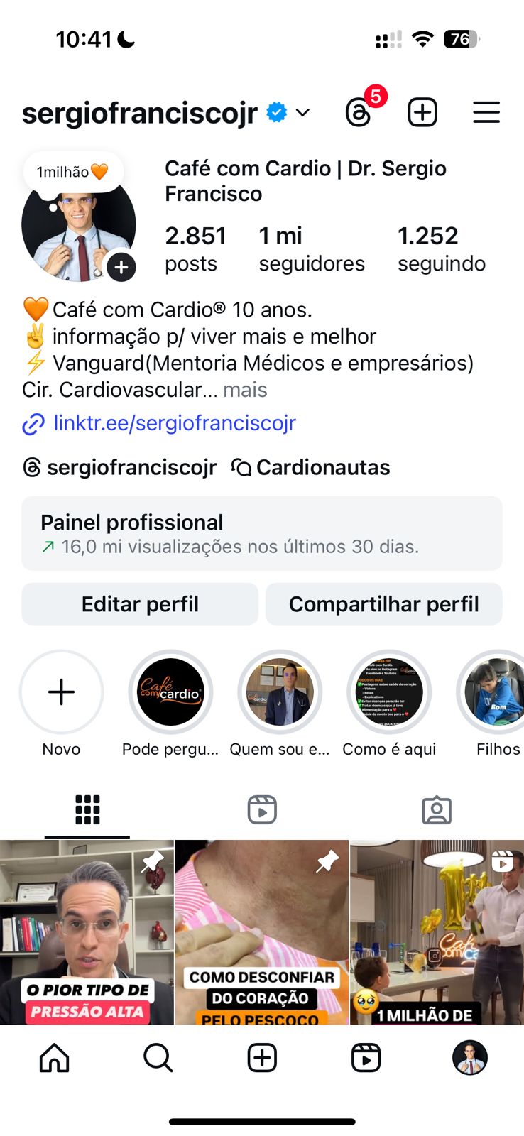 Dr. Sergio Francisco, cirurgião cardiovascular alagoano, acaba de ultrapassar a marca de 1 milhão de seguidores no Instagram, além de outros 380 mil nas demais redes, consolidando o Café com Cardio como um dos maiores projetos independentes de educação em saúde do país.