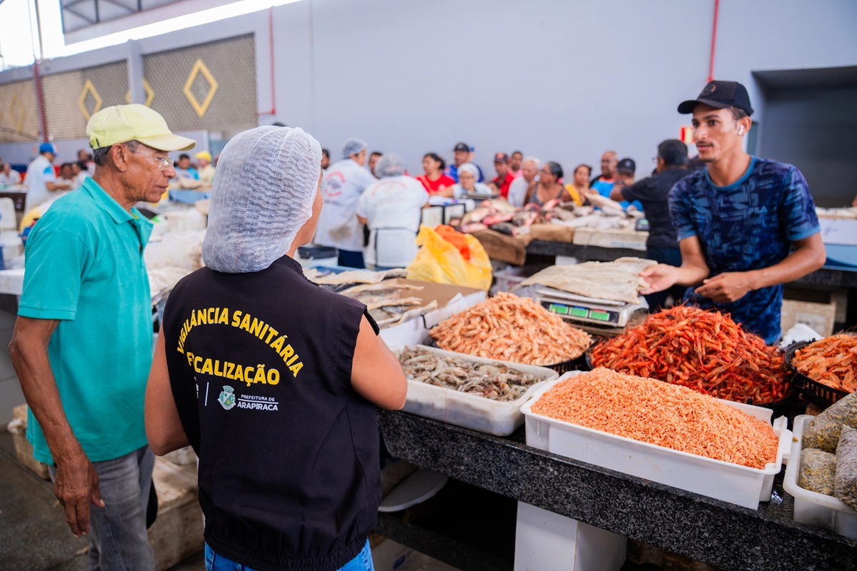 Com a chegada da Semana Santa, a procura por pescados aumenta significativamente. Por isso, a Prefeitura de Arapiraca, por meio da Secretaria Municipal de Saúde, enviou equipes da Vigilância Sanitária para garantir que todos os produtos comercializados estejam dentro das normas do município do Agreste de Alagoas.