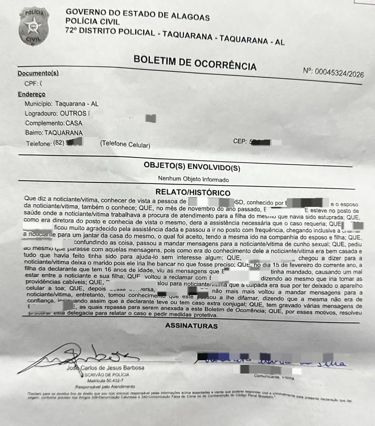 Segundo o boletim de ocorrência, a vítima afirmou que conhecia o homem apenas de vista e que chegou a prestar apoio quando ele buscava atendimento para a filha em um posto de saúde. Após o contato, o suspeito teria começado a frequentar seu local de trabalho, além de enviar mensagens de cunho sexual e convites inapropriados.