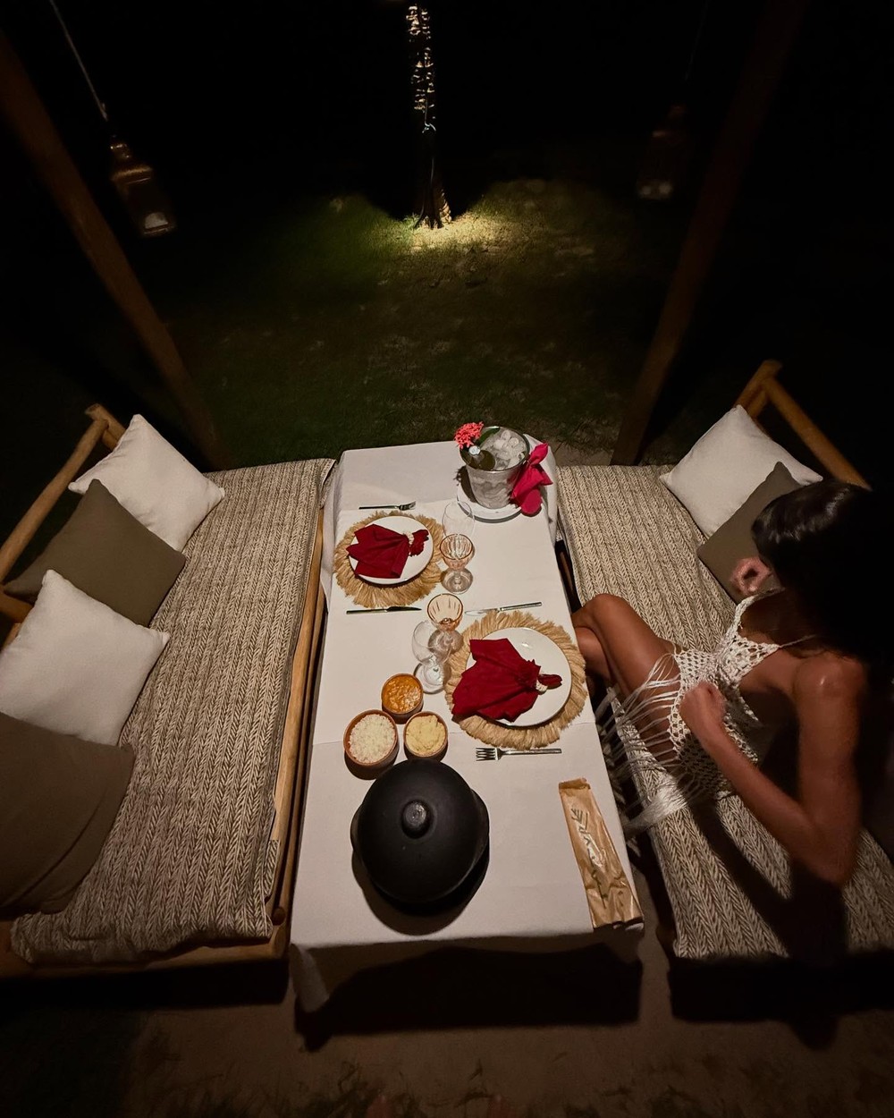 O casal, que assumiu o namoro em 2024, está hospedado em uma pousada de luxo. O filho de Leonardo divulgou uma imagem de um jantar romântico e outros cliques curtindo os últimos dias de praia e de calmaria em meio à natureza.