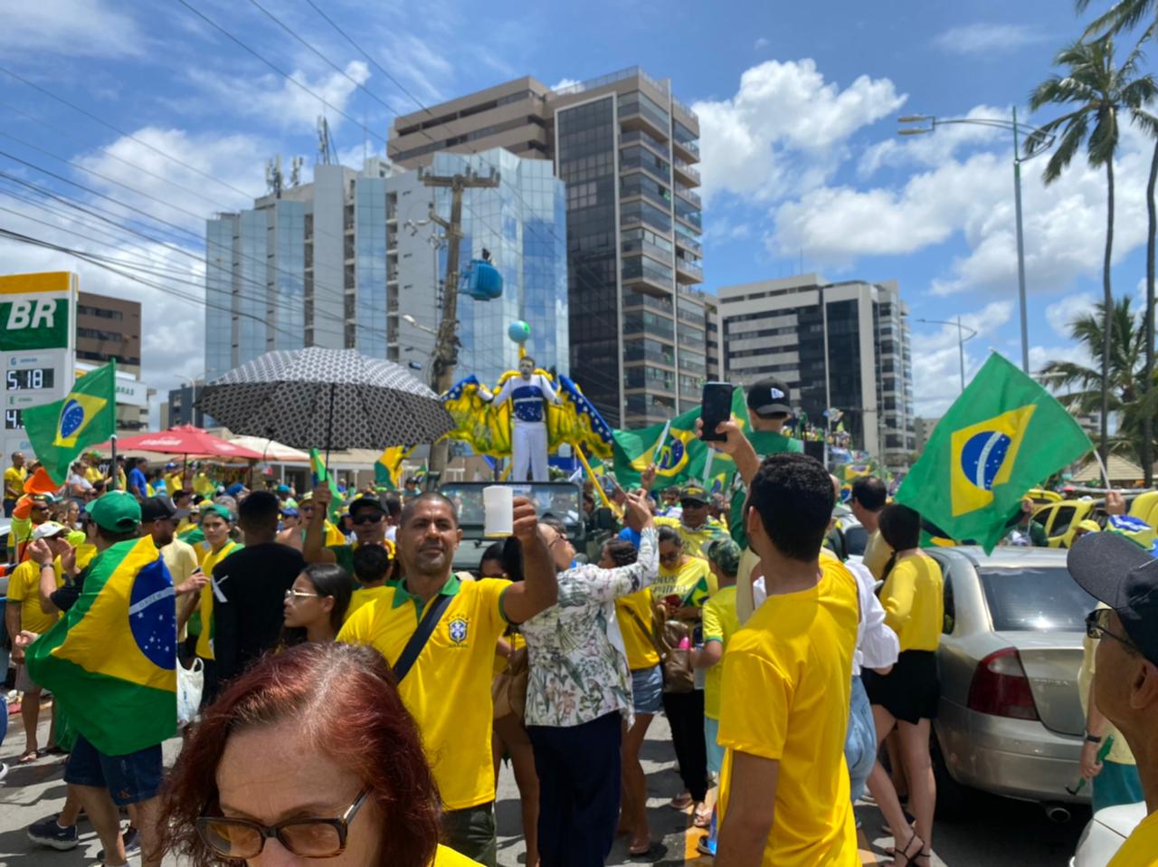 Enquanto ocorria o Grito dos Excluídos, na orla Lagunar, e o desfile Cívico do 7 de setembro, no Jaraguá, em outra ponta da cidade, a orla da Jatiúca, era tomada por representantes pró-Governo Federal, que pediam "liberdade".