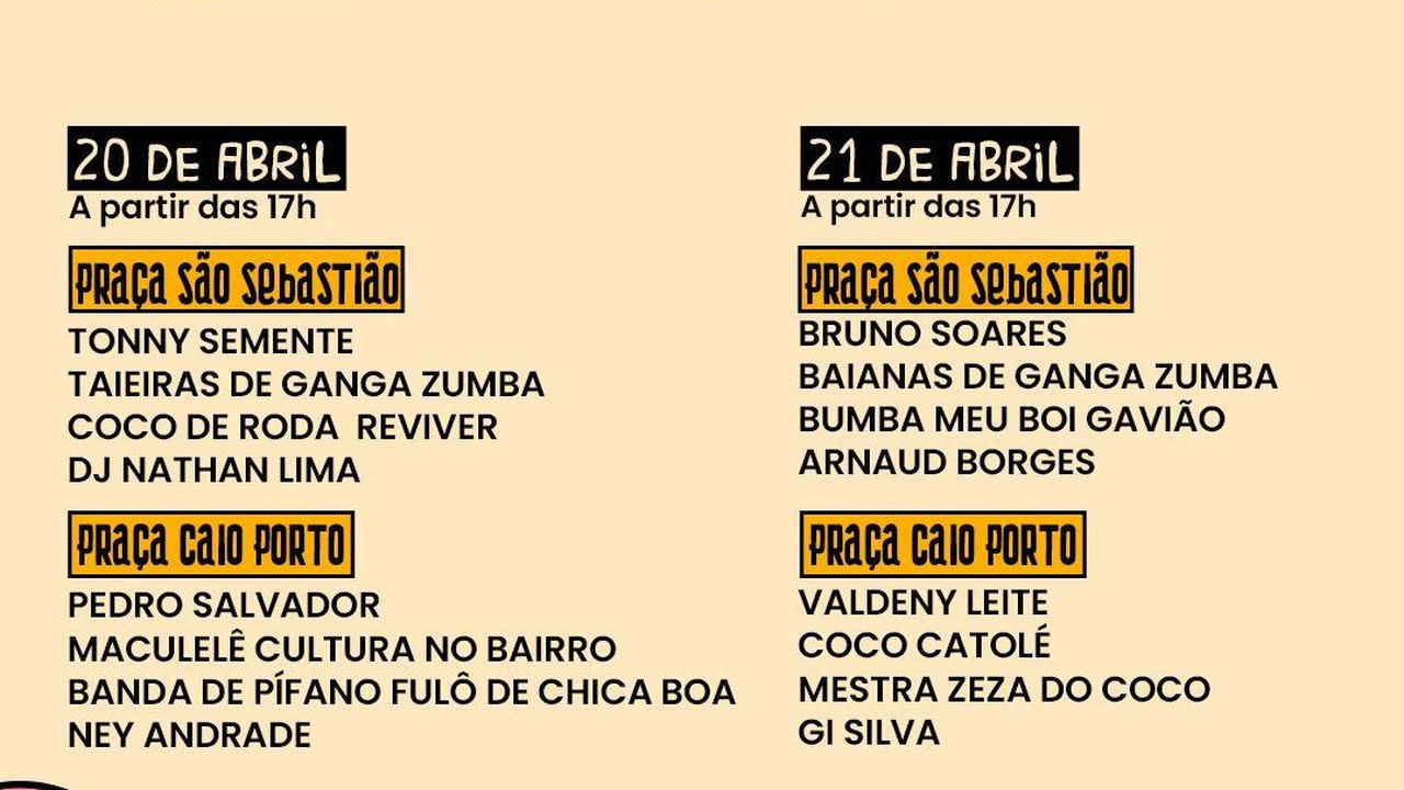 O Abril Pra Cultura é mais um evento que fomenta a cultura e o turismo de Maceió, além de promover o encontro de diferentes expressões artísticas e o diálogo entre os fazedores de arte locais e público.