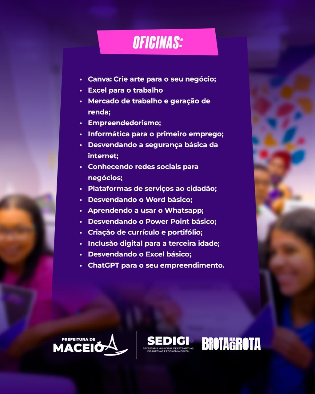 Cursos ofertados pelo Tech Massa no Brota na Grota. Foto: Ascom/Segov