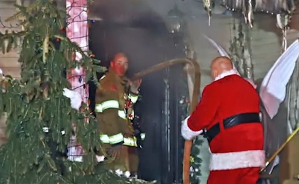 Bombeiro apaga incêndio vestido de papi noel m Nova Jersey — Foto: Reprodução/Internet