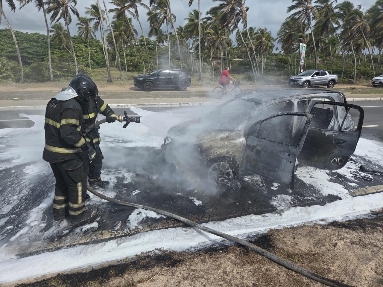 Um carro pegou fogo, na manhã desta terça-feira (20), em um trecho da Avenida Assis Chateaubriand, localizado no bairro Pontal da Barra, em Maceió. Imagens feitas por populares e também pelo Corpo de Bombeiros, que foi acionado, mostram o carro em chamas e a destruição do veículo após os militares controlarem o fogo. Não houve registro de vítimas.
