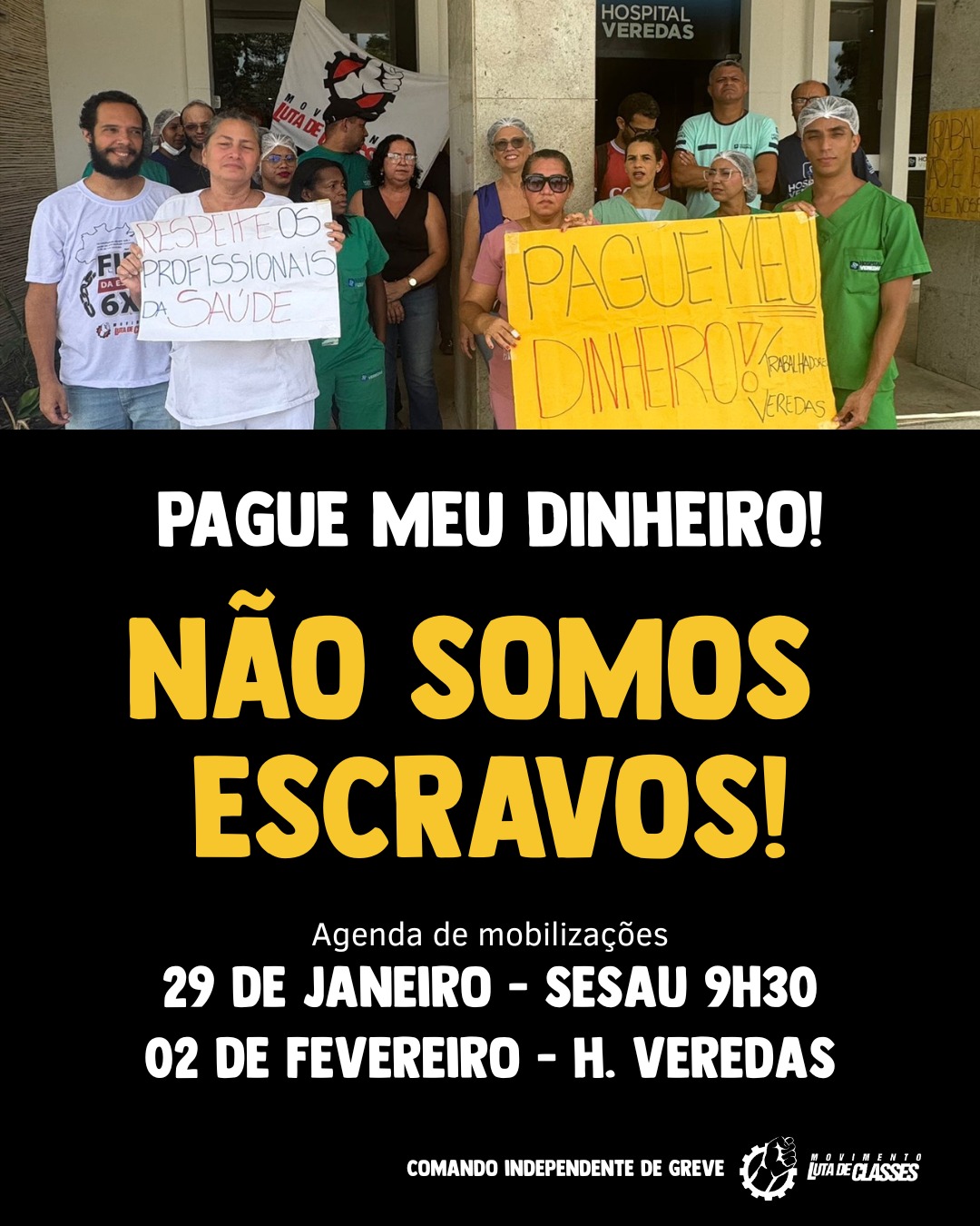 Os trabalhadores também anunciaram uma nova mobilização. Nesta quinta-feira (29), a partir das 8h, a concentração ocorrerá no Hospital Veredas, com saída prevista às 9h30 em direção à Secretaria de Estado da Saúde (Sesau). O objetivo é cobrar explicações sobre os repasses financeiros ao hospital e exigir uma solução para o pagamento dos salários atrasados.