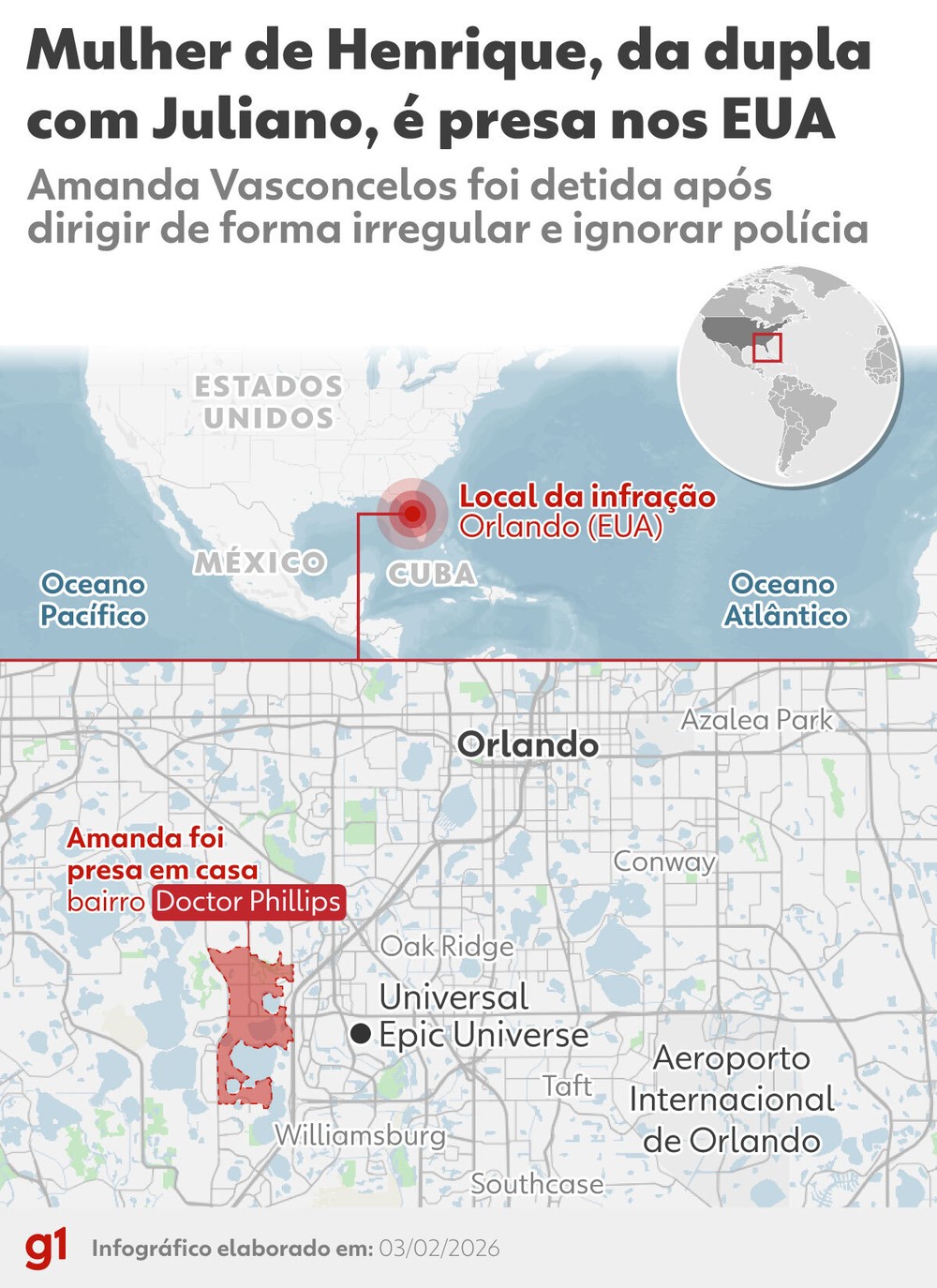 Infográfico: Mulher de henrique, da dupla com Juliano, é presa nos EUA — Foto: Arte G1