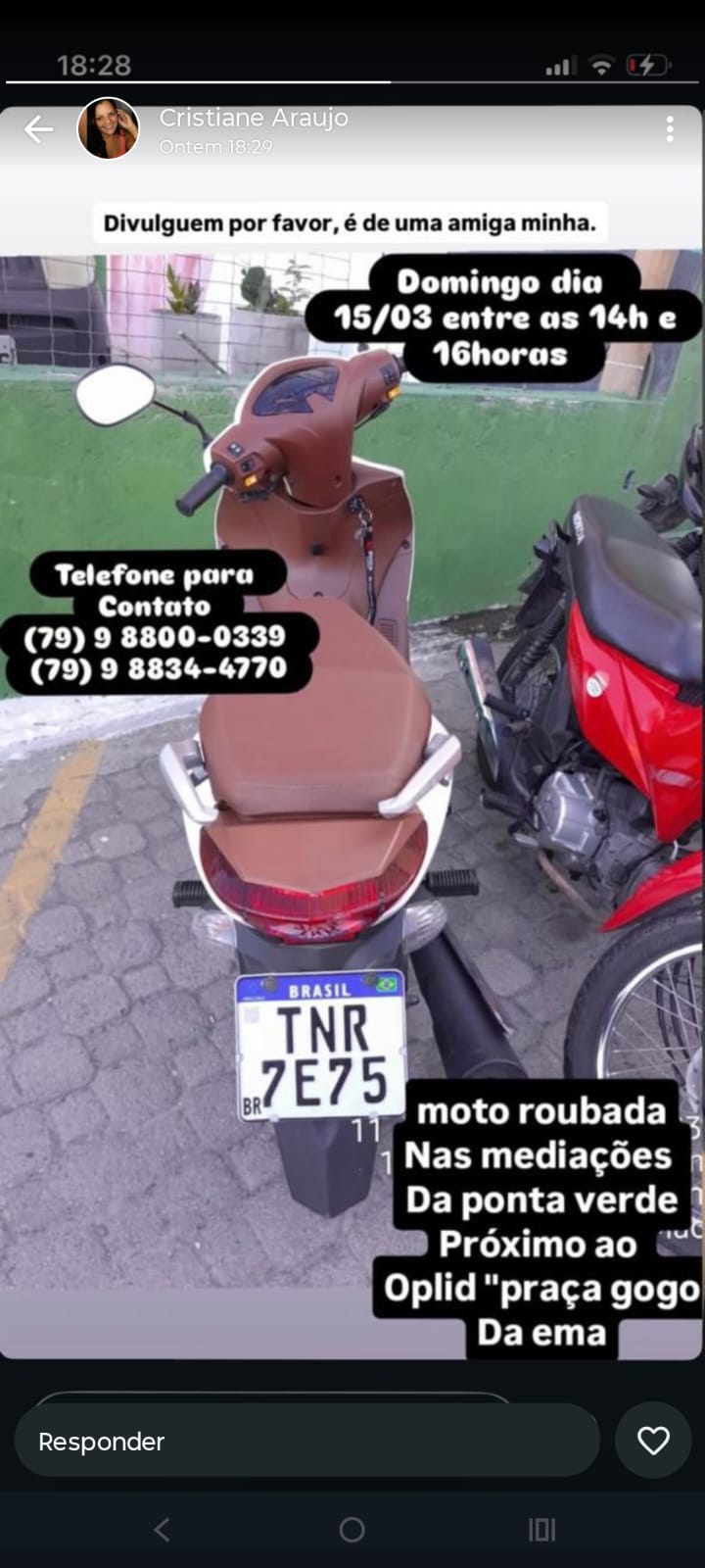 Quem tiver informações sobre o paradeiro da motocicleta ou sobre o suspeito pode entrar em contato pelo número (79) 9 8800-0339.