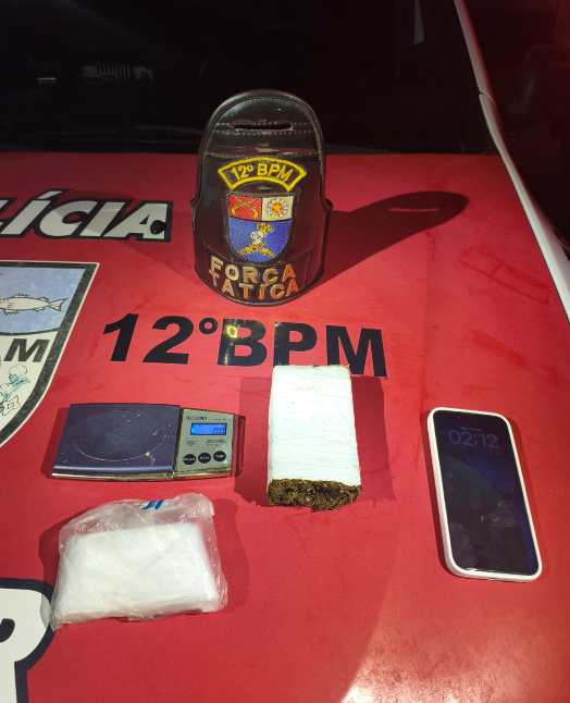 Após a colisão contra a viatura, os agentes encontraram uma sacola, que tentou ser descartada pela dupla, com substância análoga à maconha, além de uma balança de precisão, e material para embalar os entorpecentes.