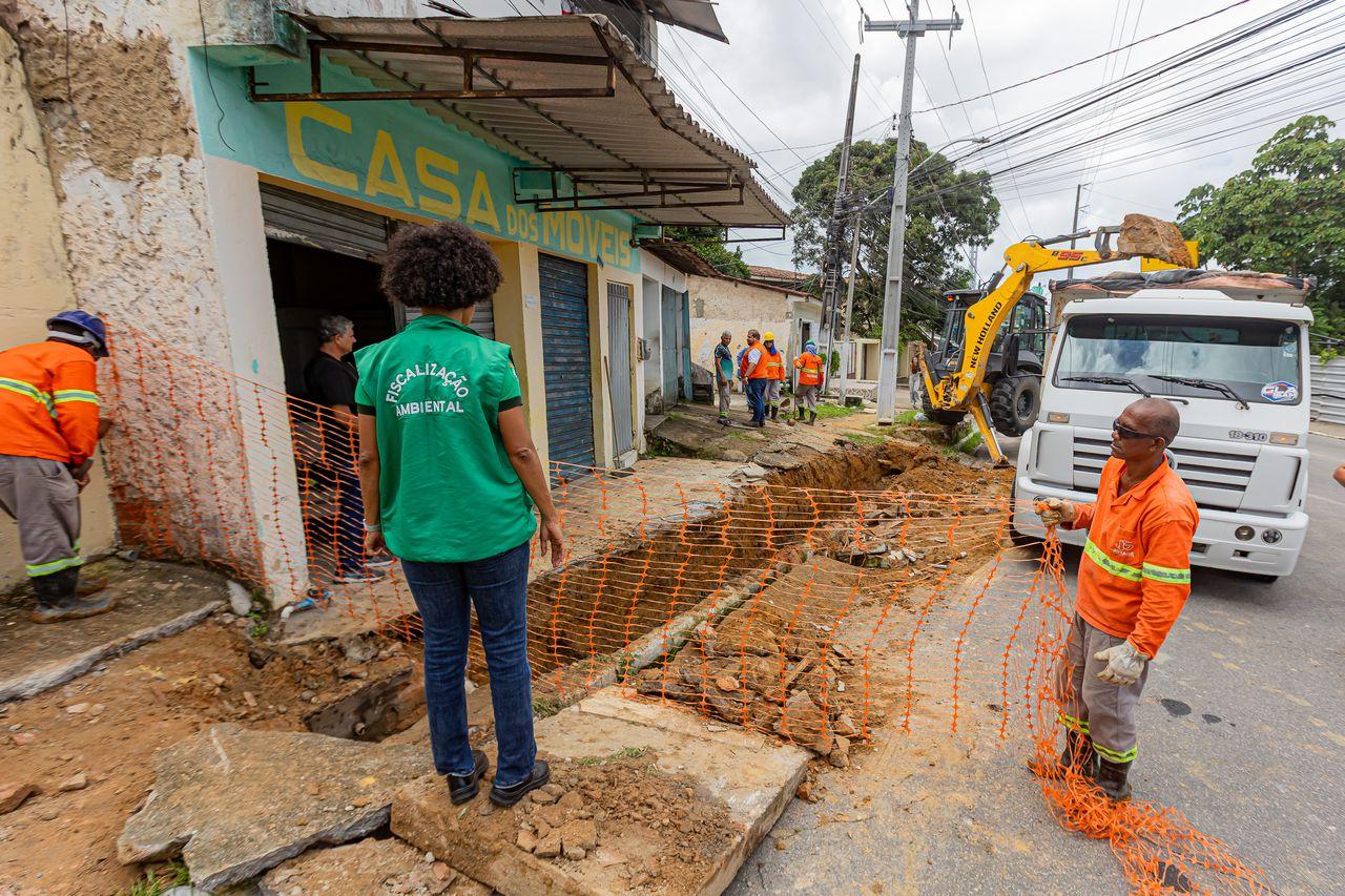 Uma operação conjunta entre Defesa Civil de Maceió, Secretaria Municipal de Infraestrutura (Seminfra) e Instituto de Pesquisa, Planejamento e Licenciamento Urbano e Ambiental (Iplam) foi executada, na manhã desta segunda-feira (27), para verificar a causa do afundamento de solo em uma residência na Vila Saem, no bairro do Pinheiro.