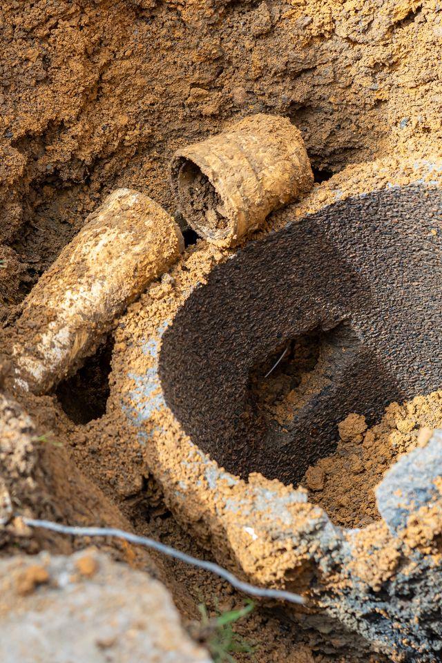 A manilha por onde percorre a água foi danificada para a inserção da ligação clandestina, o que causou infiltrações no solo e encharcou o mesmo a ponto de causar o rebaixamento no passeio.