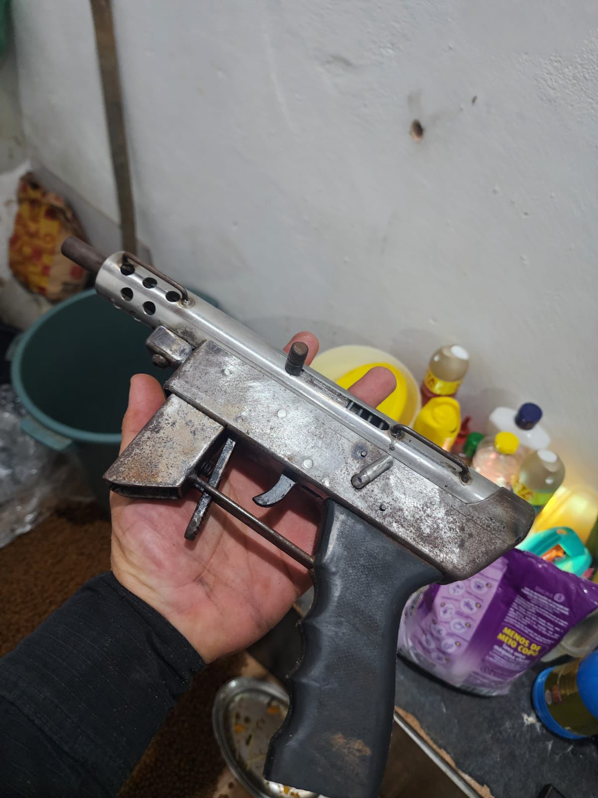 Na busca pessoal, os militares encontraram uma mochila contendo uma submetralhadora artesanal calibre 9mm, um carregador com 25 munições intactas, uma balança de precisão, além de pequenas quantidades de cocaína e maconha.