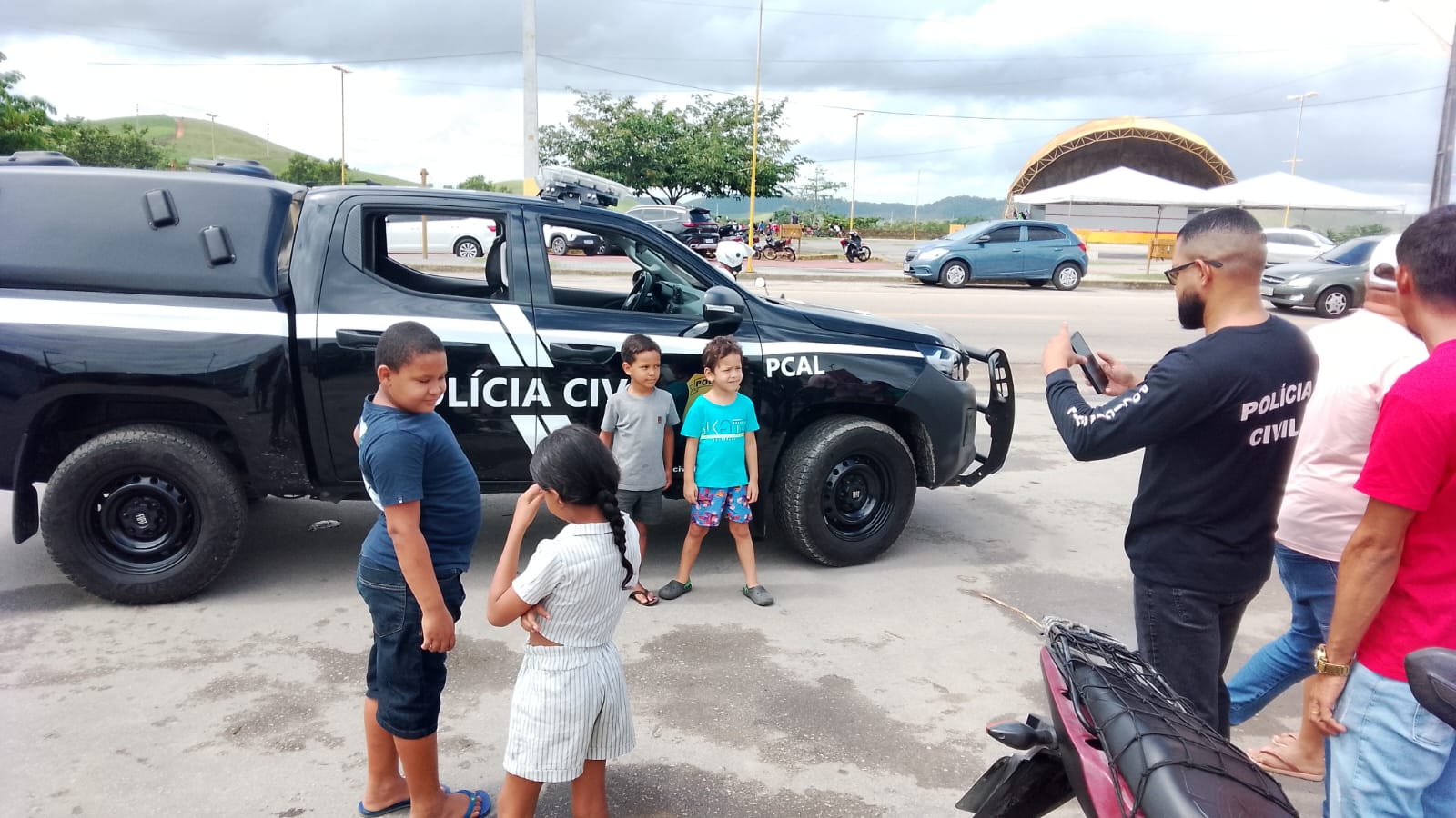 Imagens registradas durante o evento mostram os pequenos posando para fotos ao lado de viaturas da Polícia Civil, alguns inclusive entrando nos veículos e interagindo com os policiais, em um clima de descontração e encantamento.