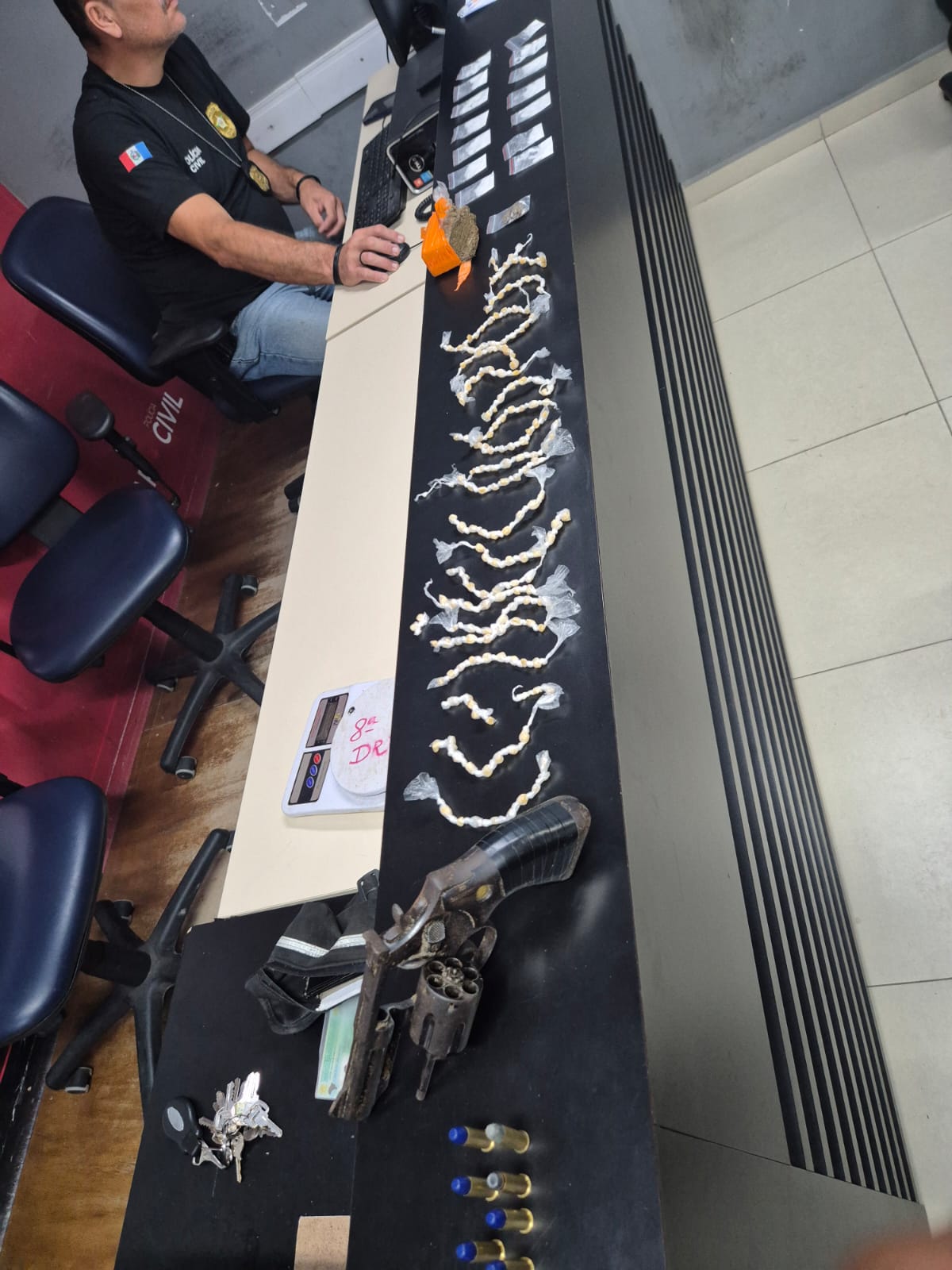 Com o homem de 41 anos, que não teve o nome divulgado, os agentes encontraram um revólver calibre .38 com seis munições, 14 g de cocaína, 120 g de maconha e 201 g de crack. Ele foi encaminhado para o Centro Integrado de Segurança Pública (Cisp), na cidade de Matriz de Camaragibe, onde a Polícia Civil adotou as medidas legais.