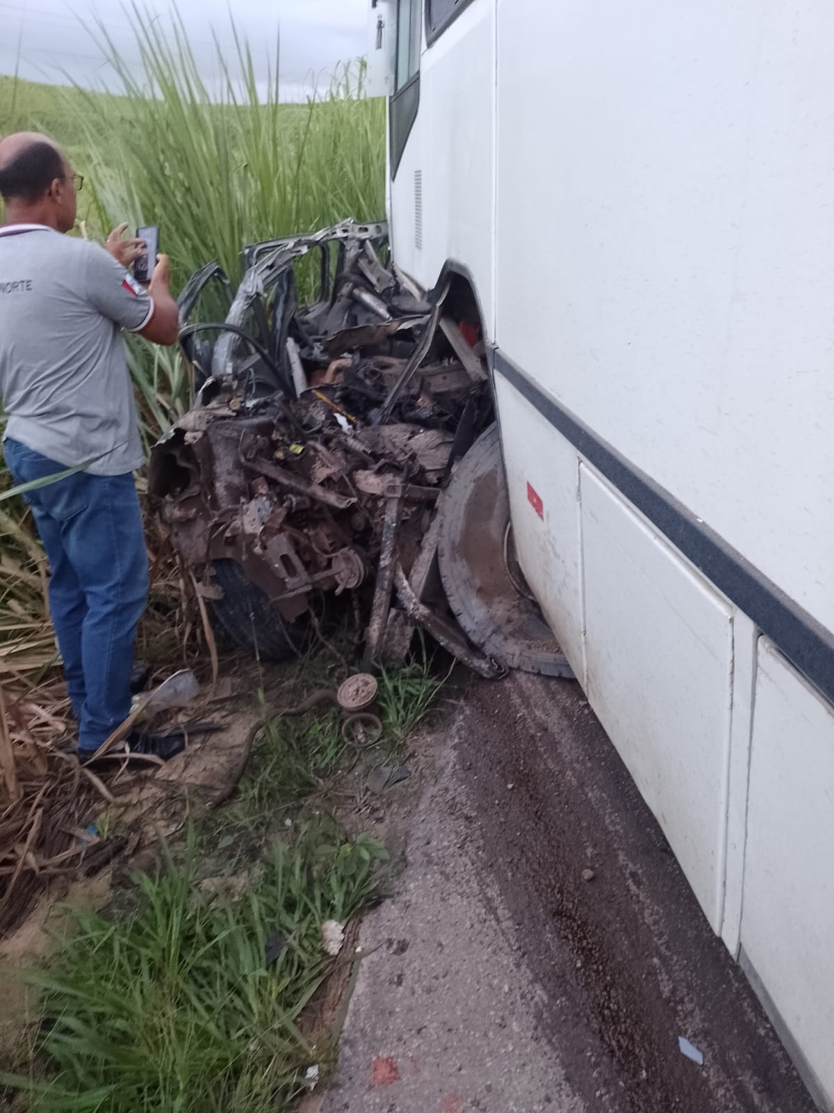 O sinistro na malha viária estadual ocorreu nas proximidades do conjunto Oscar de Souza Cunha e deixou o carro pequeno praticamente destruído e os dois homens mortos ficaram presos às ferragens.