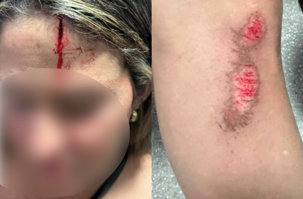 Nas imagens é possível ver que a mulher sofreu ferimentos no rosto, testa e pernas. Ela recebeu atendimento médico e segue em recuperação.